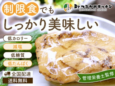 Dr.つるかめキッチンの「糖質制限気づかい御膳」は、糖質15g以下、カロリー240kcal(±10%)、塩分2.0g以下と、ウェルネスダイニングと同水準の数値設計ながら、和食中心のやさしい味付けと続けやすい価格帯が魅力です。